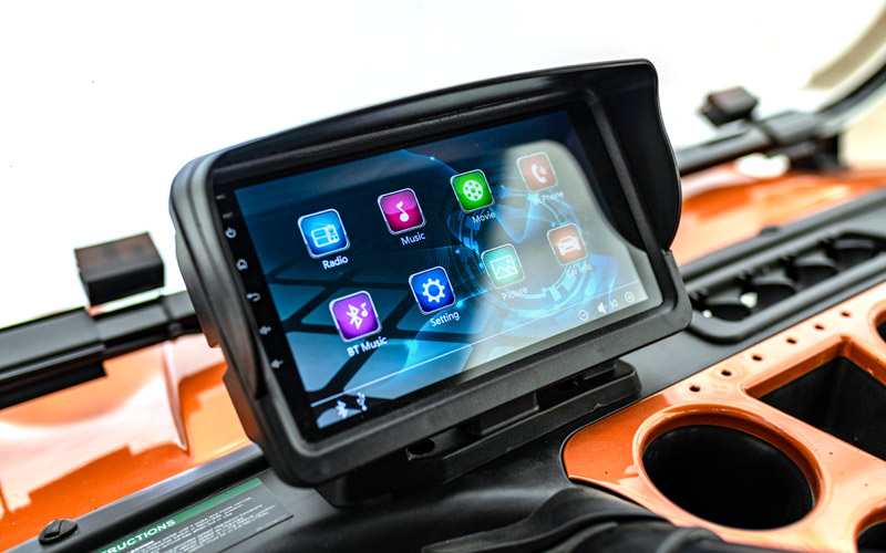 Every ride in the HDK Classic Plus feels modern and connected thanks to its built-in Multi-Media Centre. Standard on the Classic Plus model, this system transforms your golf cart into a complete in-vehicle experience. Enjoy peace of mind and convenience with features like a backup camera, radio, Bluetooth music streaming, stored music playback, movie streaming, and cellular calling, all delivered through high-quality built-in speakers.