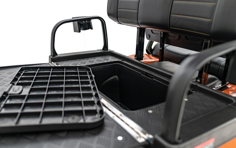 The Classic 4 Plus offers versatile storage options with compartments in the dashboard and front hood, along with a convenient rear storage container located under the 3rd & 4th passenger seats for added carrying capacity.
