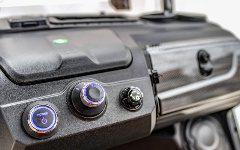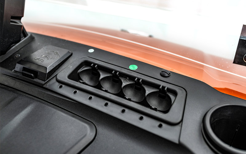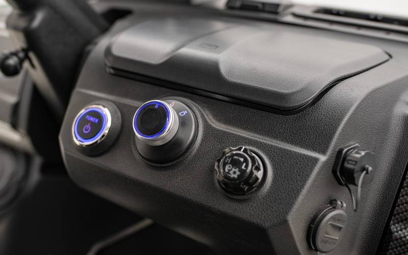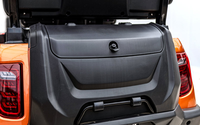 The Maverick 6 offers versatile options, including dashboard compartments and a spacious rear storage trunk. The rear trunk provides ample room for outdoor gear, clothing, and other necessities, keeping everything organized, accessible, and ready for wherever the road takes you.