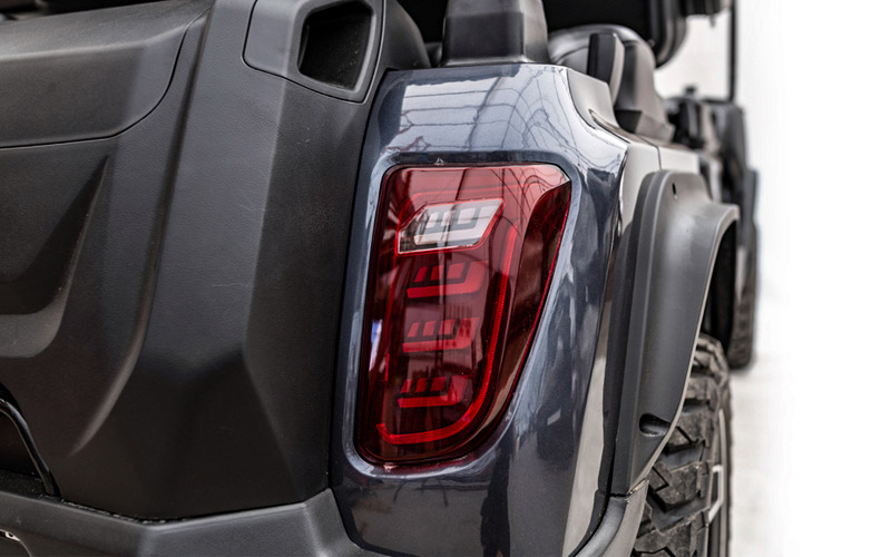 The D5 Maverick blends strength, functionality & style in every detail. Its brush guard shields the HDK cart from debris, branches & rugged terrain, reinforcing the front end while adding bold off-road character. The sturdy metal running boards make entry and exit effortless, offering reliable protection and lasting performance.