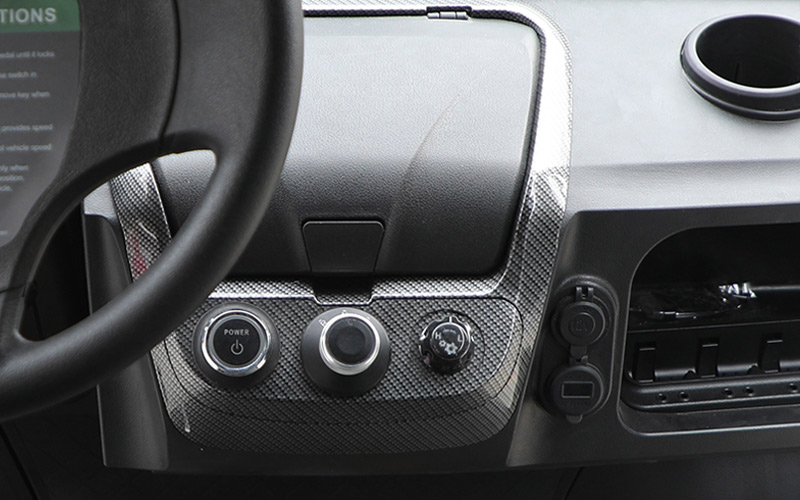 Modern details like a built-in cupholder designed to fit various cup sizes and minimize spills, a 12V power outlet and a USB charger, and a built in refrigerator – all add extra practicality. It also includes a handy compartment for small accessories, such as a USB cable for charging devices on the go, ensuring a convenient, and organized ride every time you hit the course.